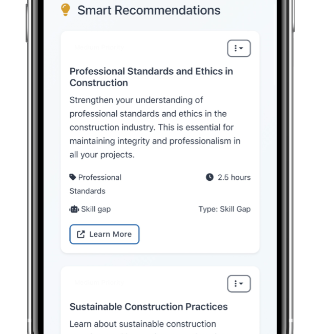 CPDpro is designed for construction professionals seeking a streamlined way to log their CPD and receive smart recommendations to bridge skills gaps.